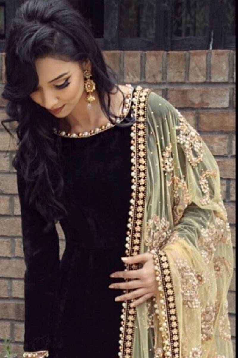 Black Velvet Wedding Anarkali Suit With Dupatta