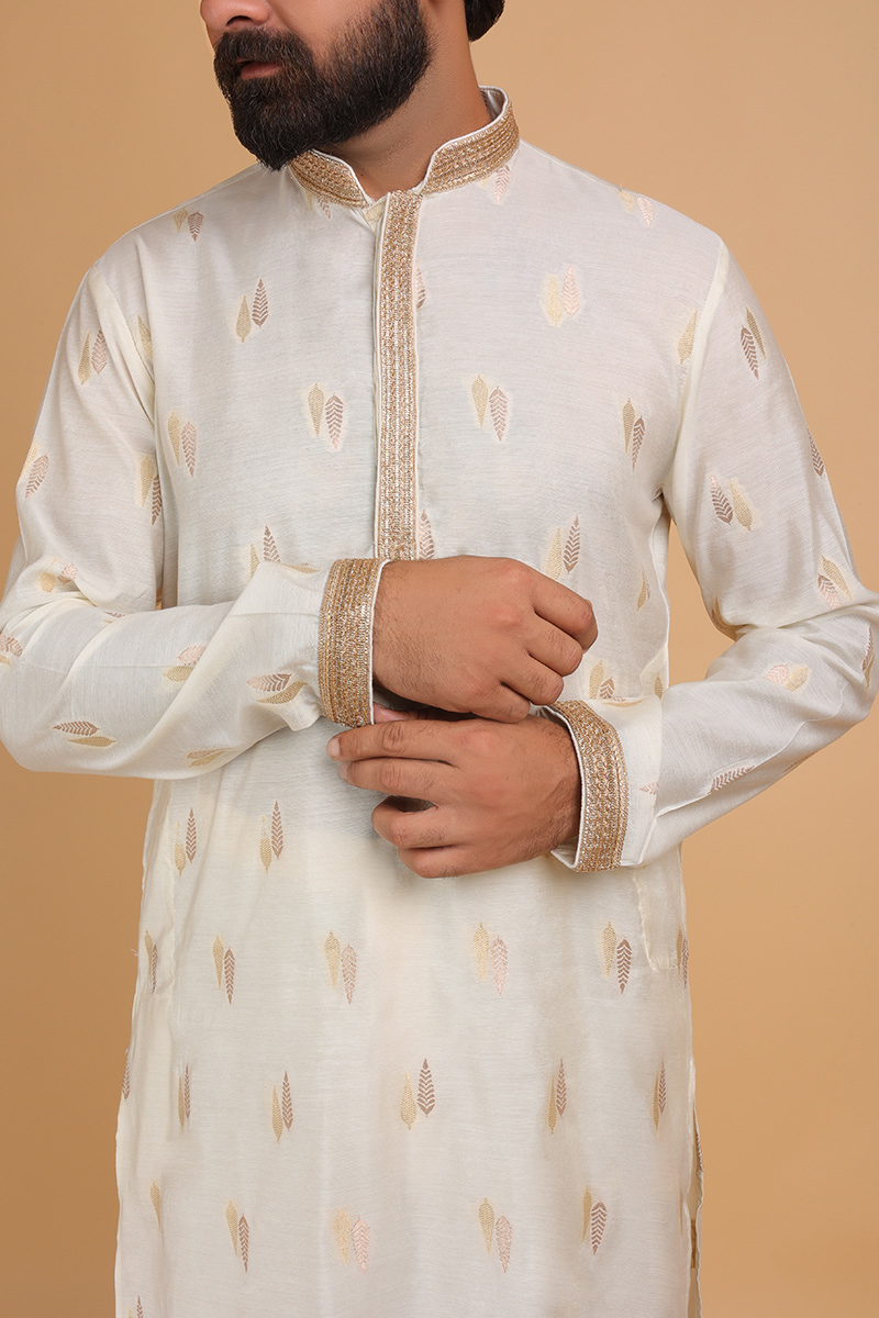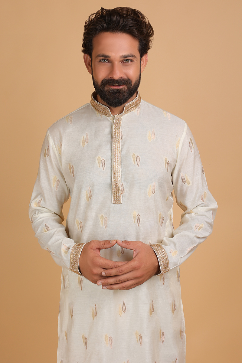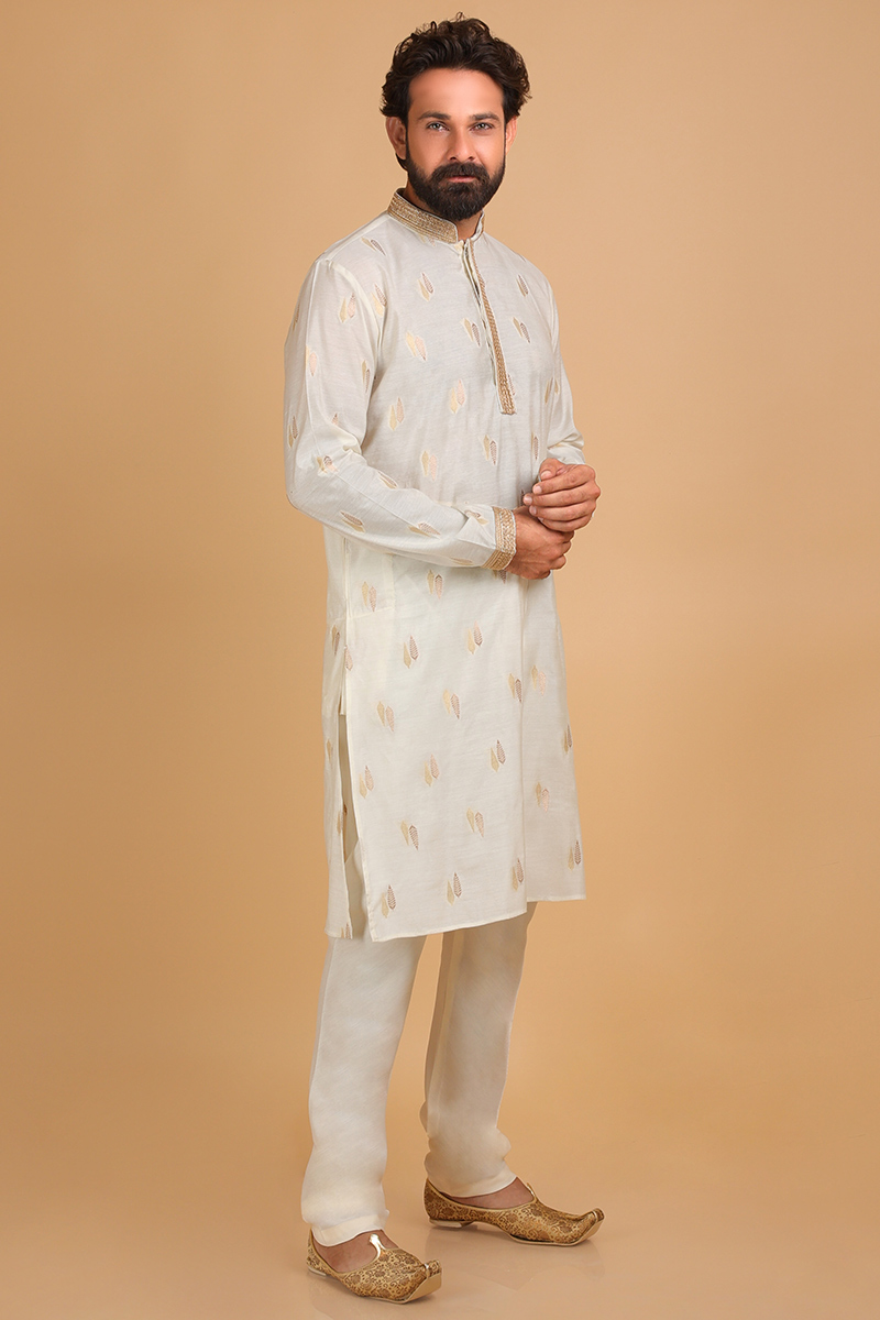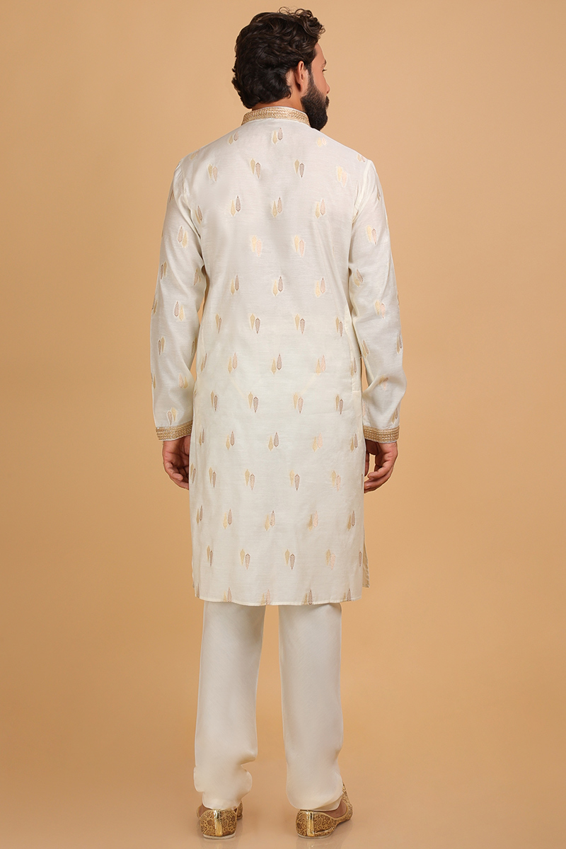 Fashionable Ivory Woven Zari Men's Kurta Pajama