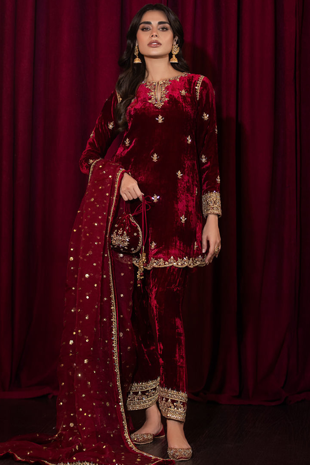 Cast a spell with this maroon velvet salwar suit, providing unmatched all-day comfort.