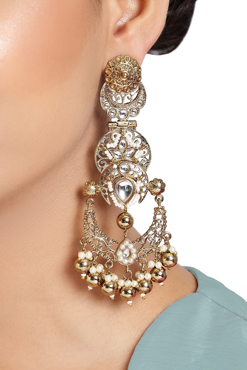 Adorned with intricate bead work, shimmering stone embellishments, and finished with rich gold plating, these earrings capture the essence of festive beauty. Their bold colors and exquisite detailing make them the ideal accessory for weddings, celebrations, or any moment you want to shine.