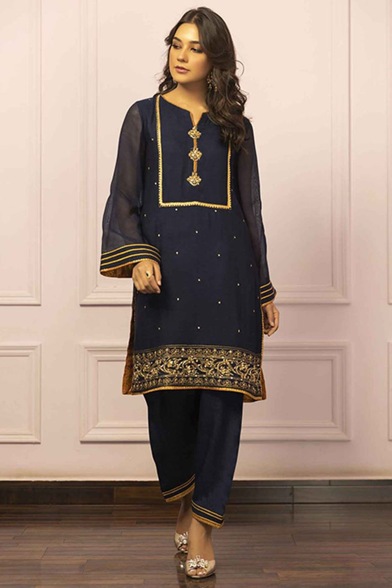 Navy Blue Cotton Silk Embroidered Pakistani Patiala Style Suit