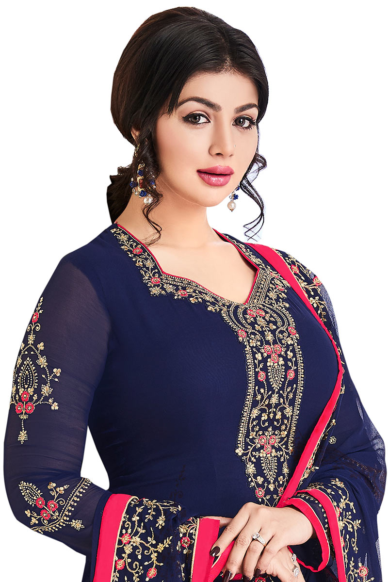 Navy Blue Georgette Embroidered Indian Churidar Suit