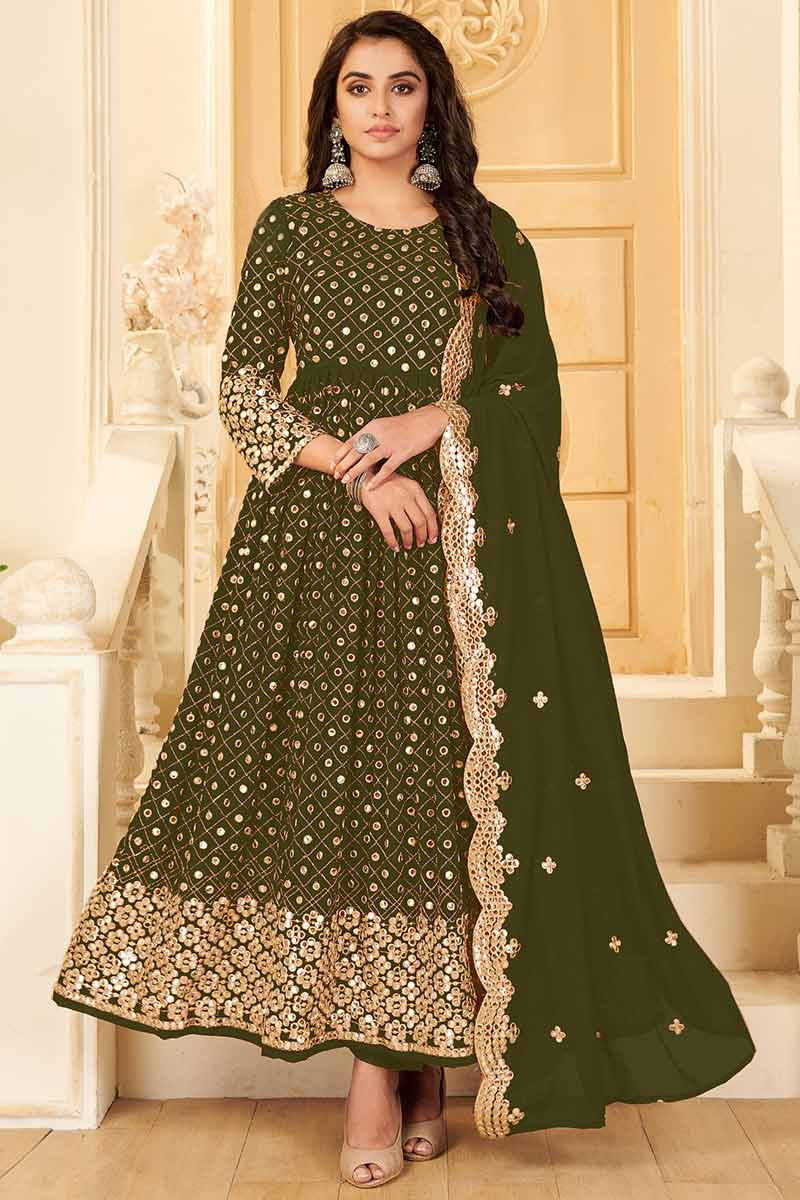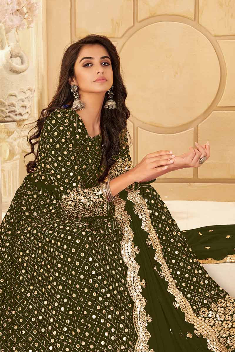 Olive Green Georgette Ankle Length Wedding Anarkali Salwar Suit