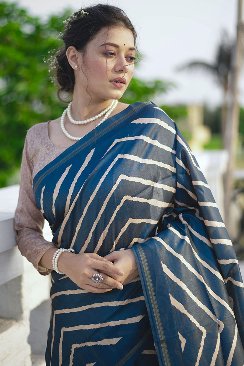 Get gorgeous in this blue tussar silk saree which will make you absolutely classy.