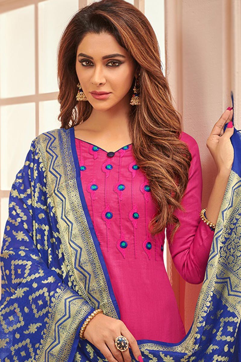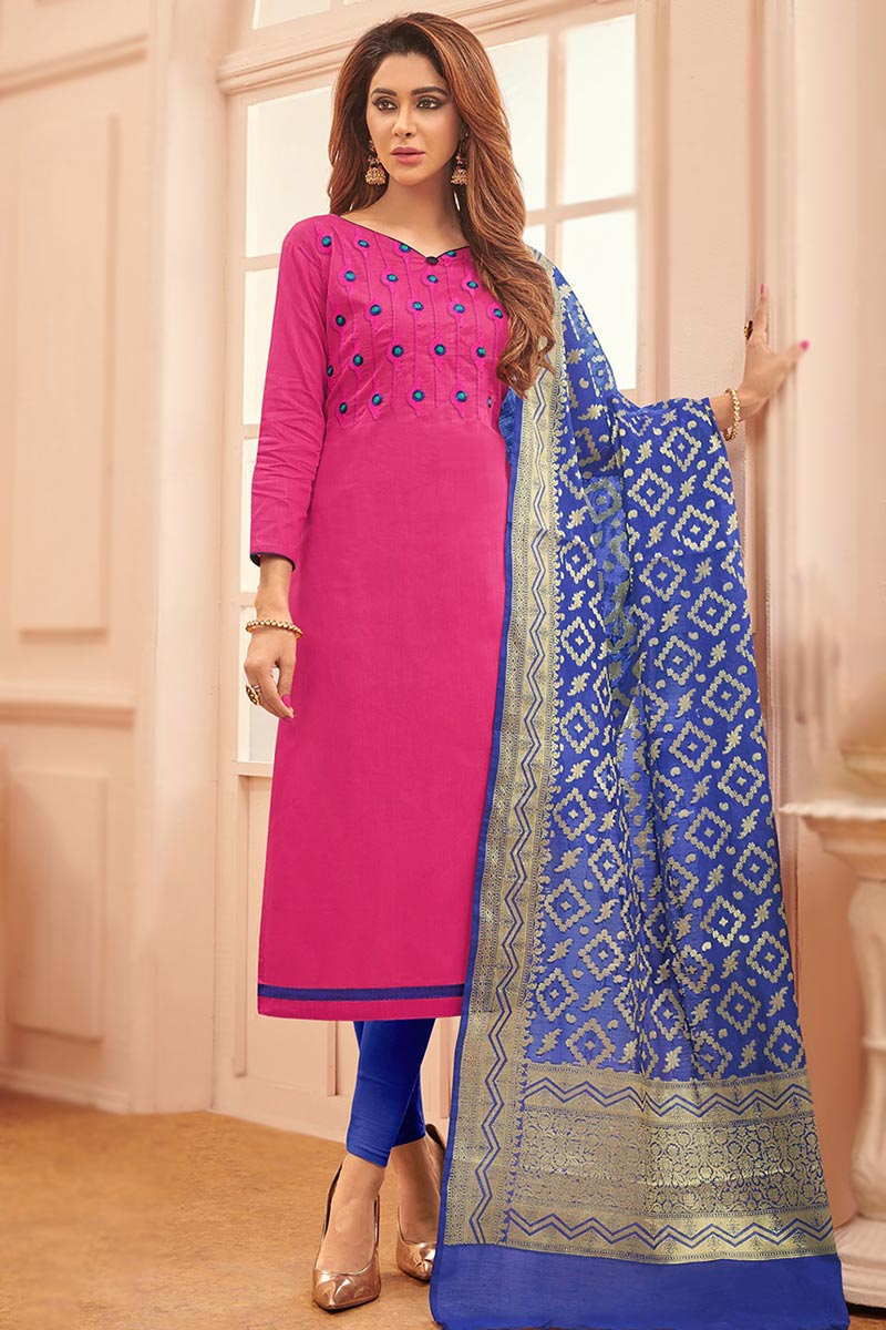 Immerse yourself in the world of the elegant and traditional world by wearing this rani pink cotton legging suit which will personify your grace.