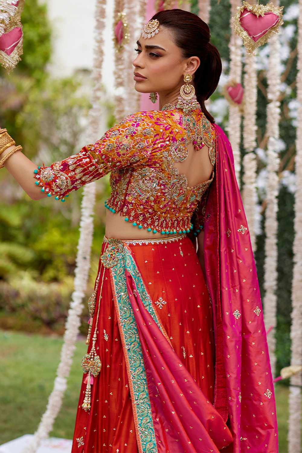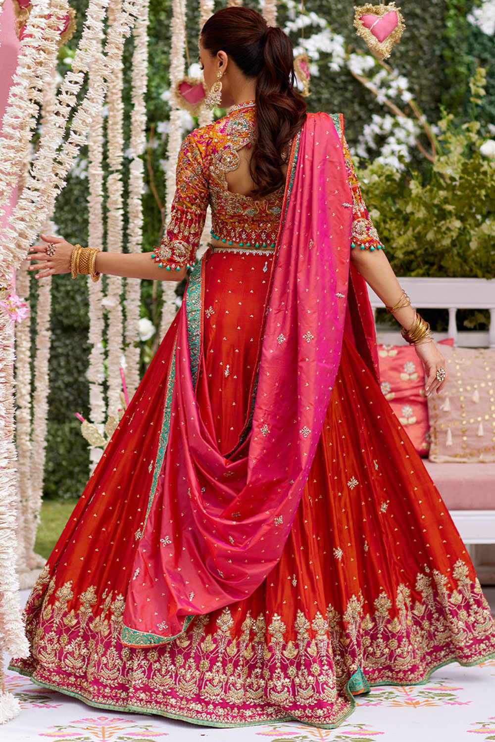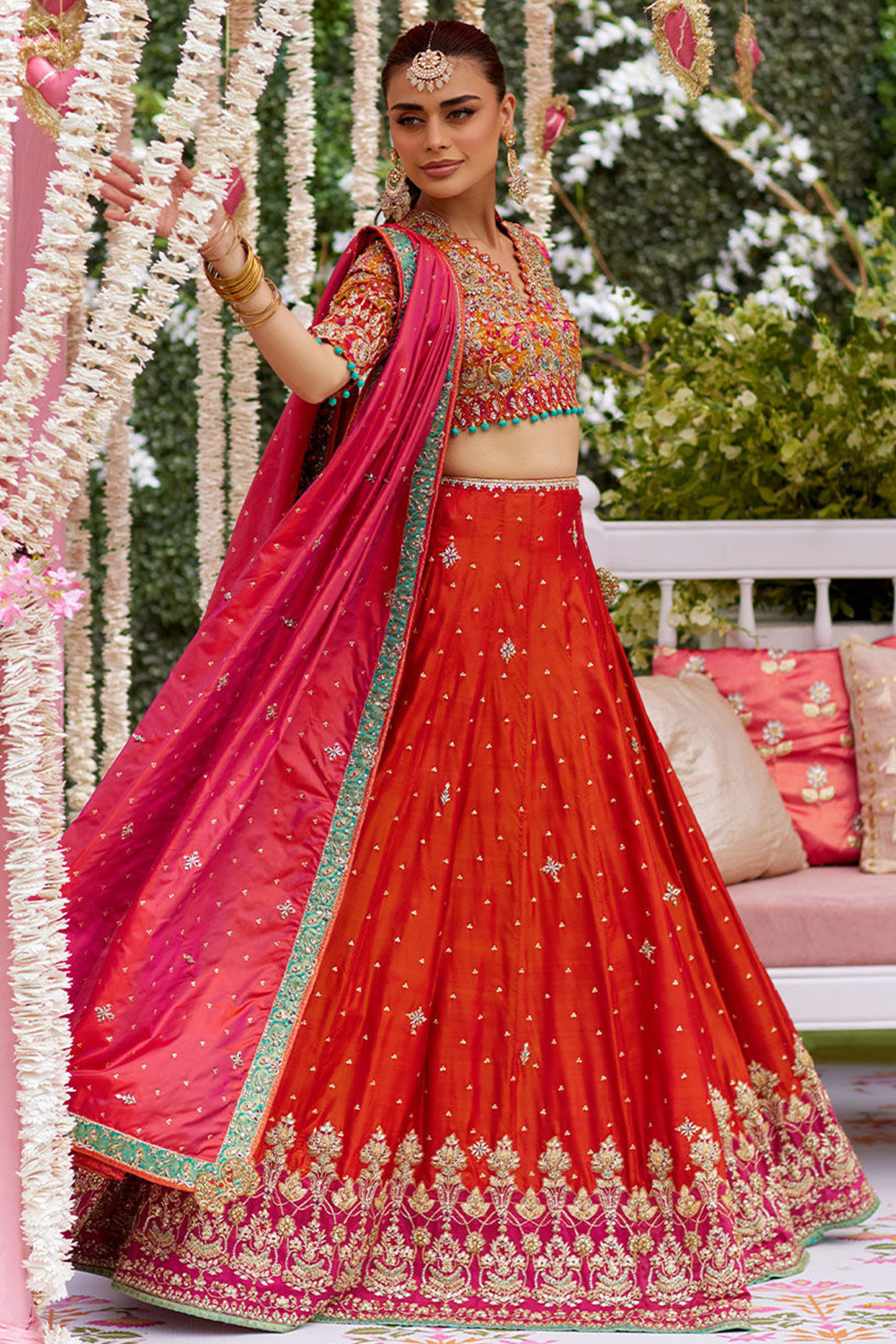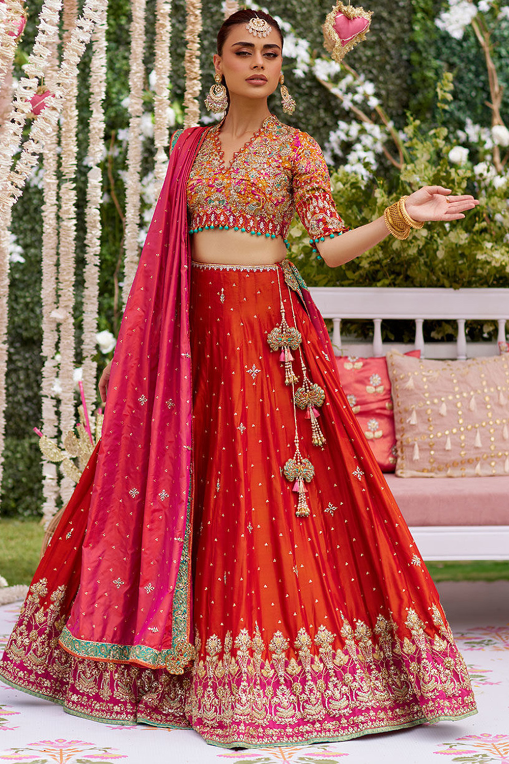 - Lehenga - Pure Red, Blouse - Pure Red, Dupatta - Rani Pink