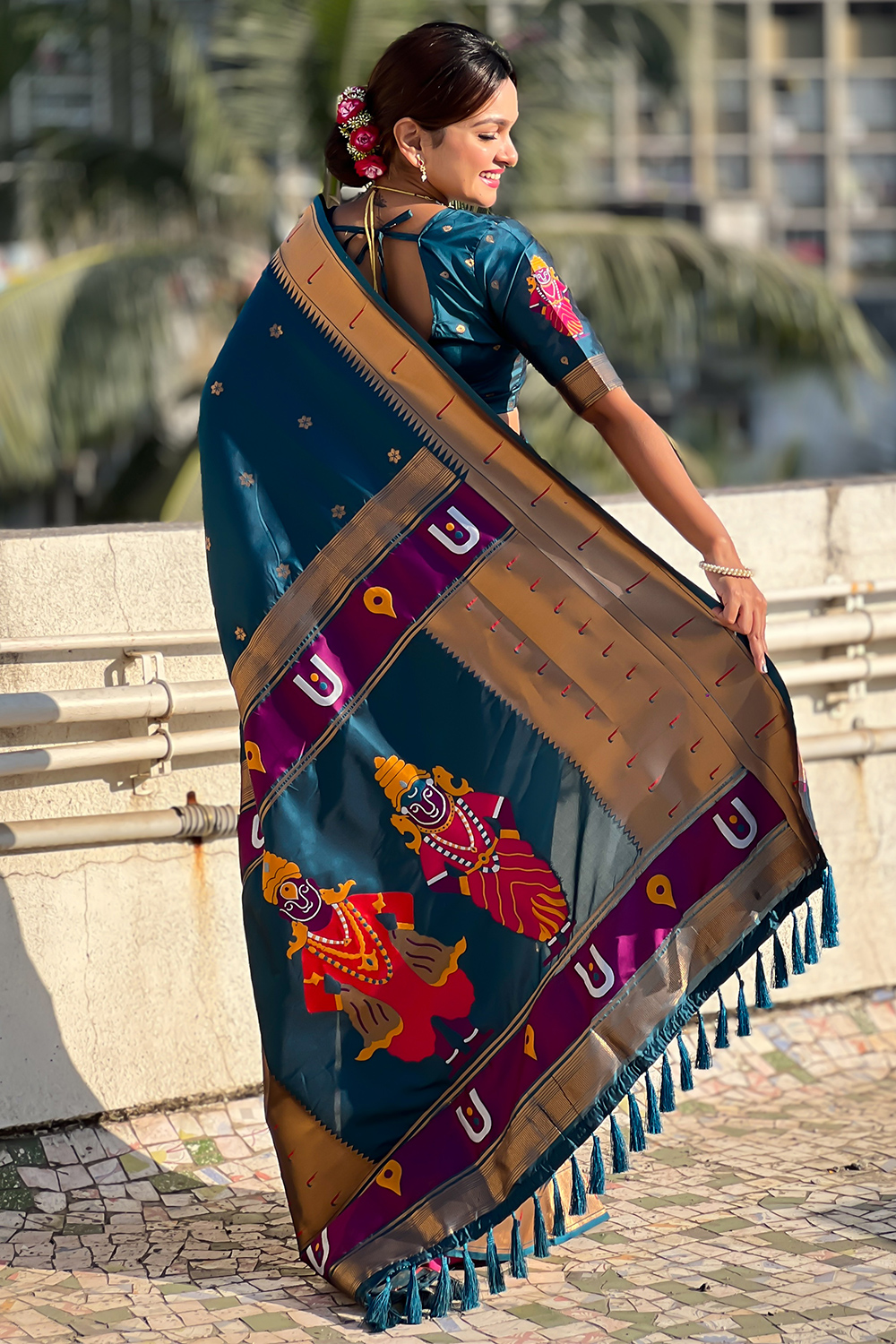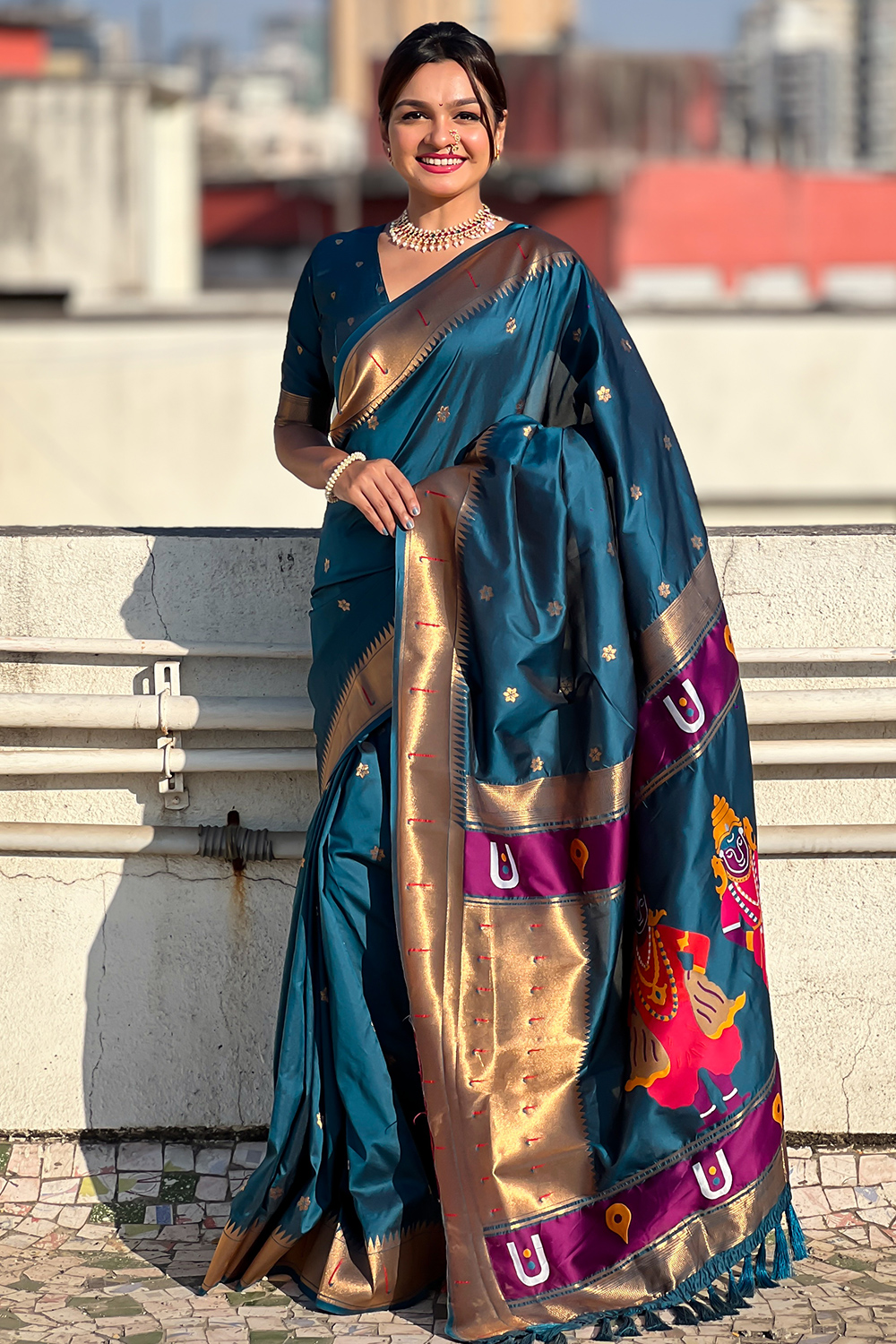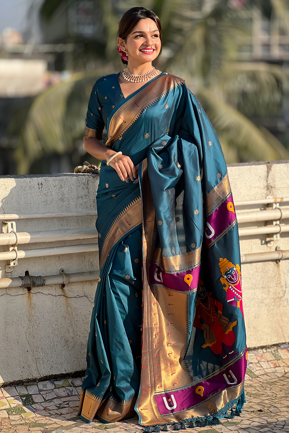Silk Sea Blue Woven Zari Paithani Saree