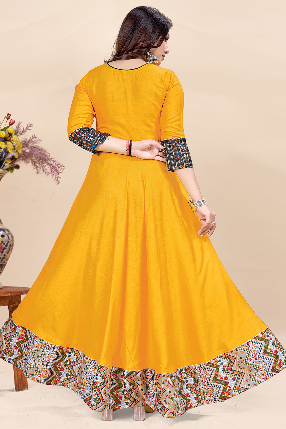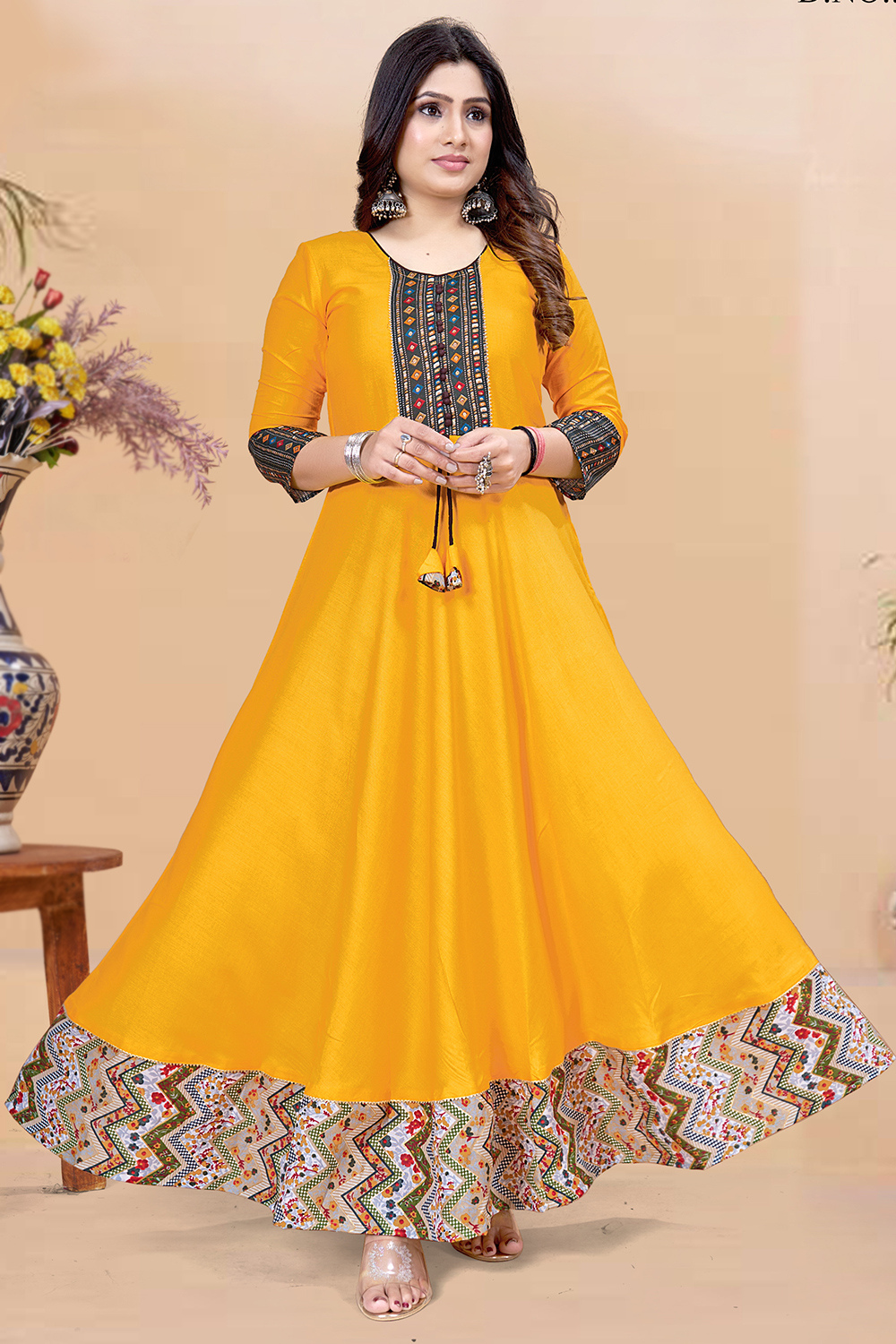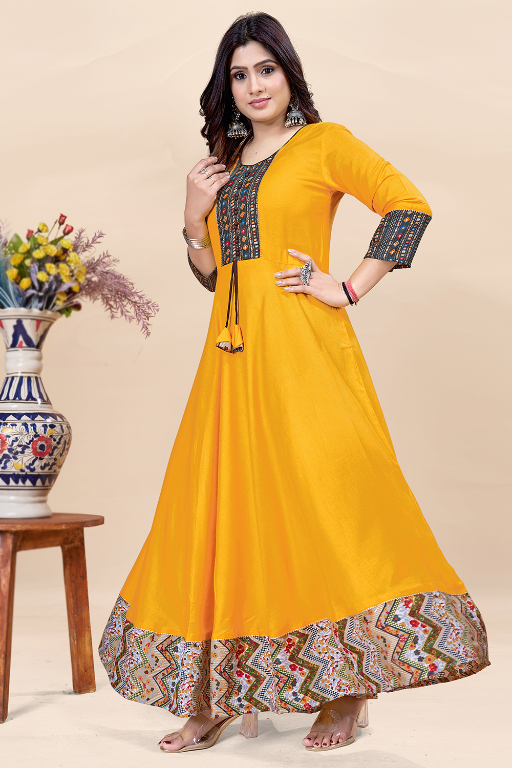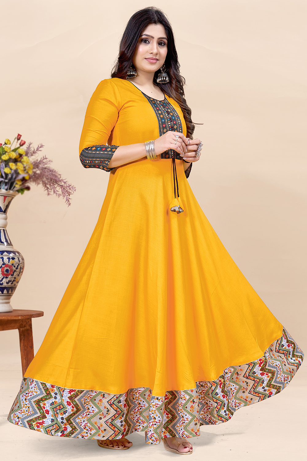 Turmeric Yellow Rayon Printed Anarkali Style Kurti